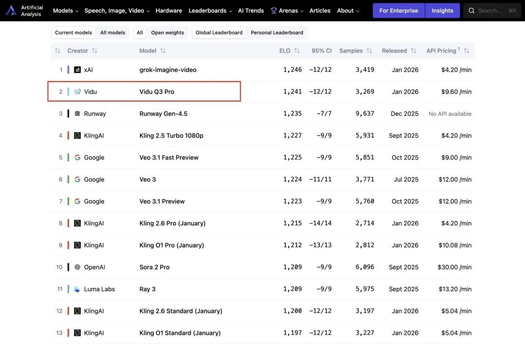 在Artificial Analysis最新榜单中,Vidu Q3表现非常亮眼,硬刚马斯克Grok,位列中国第一、全球第二。
