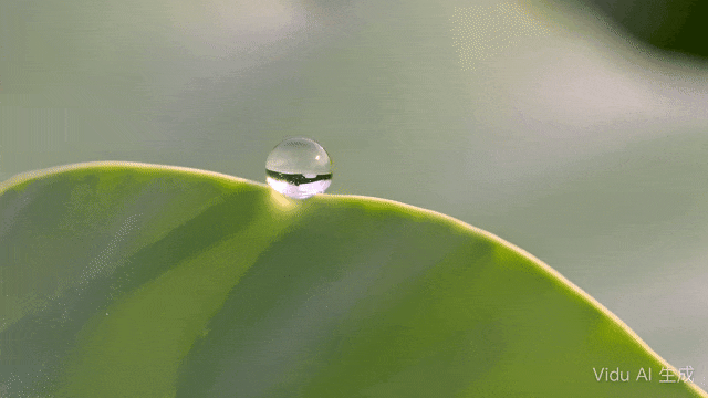 Vidu Q3还特别擅长「微距镜头」,如下demo中,荷叶在微风中轻微颤动,露珠从边缘缓缓滑落,展现了它对物理世界的顶级理解力。