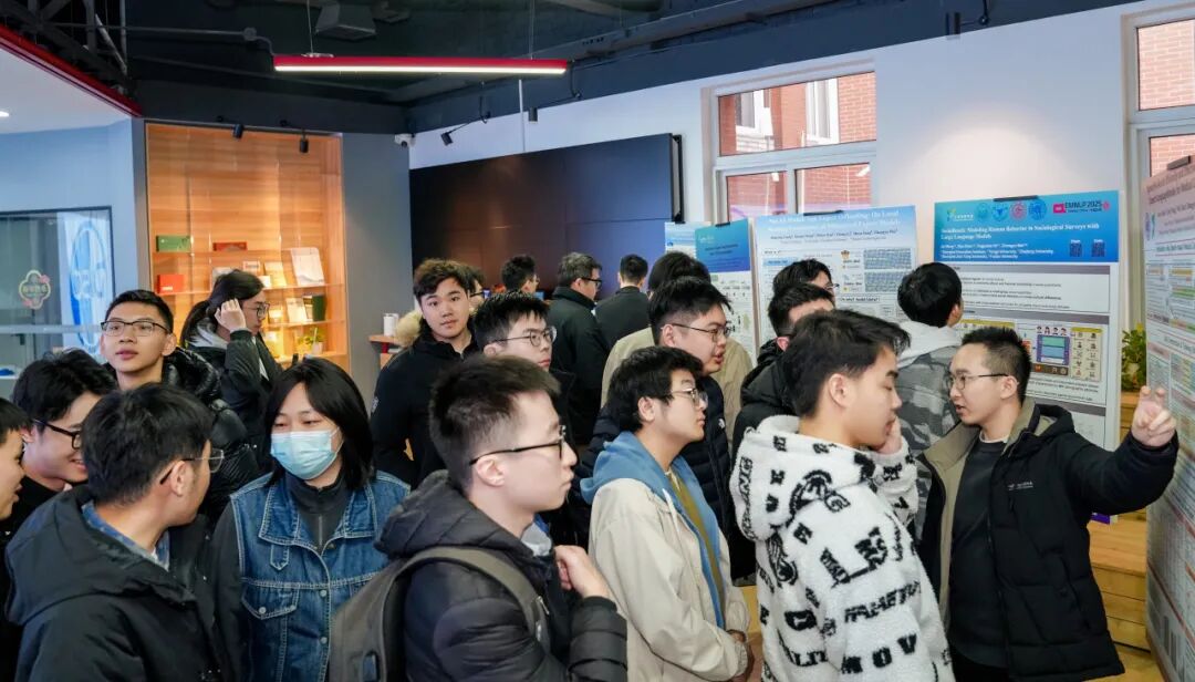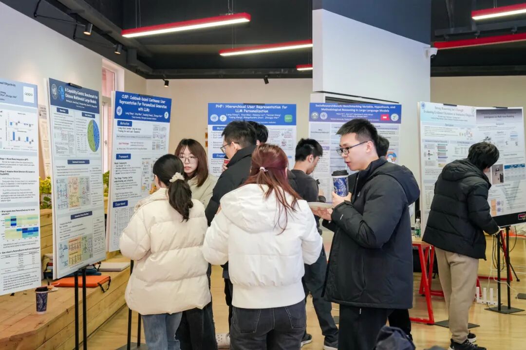 在海报与 Demo 展示环节,课题组成员与参会师生围绕多模态社会模拟、个性化助手评测、智能体系统构建及跨领域应用等内容进行了面对面的交流,进一步促进了学术讨论与学科交叉。