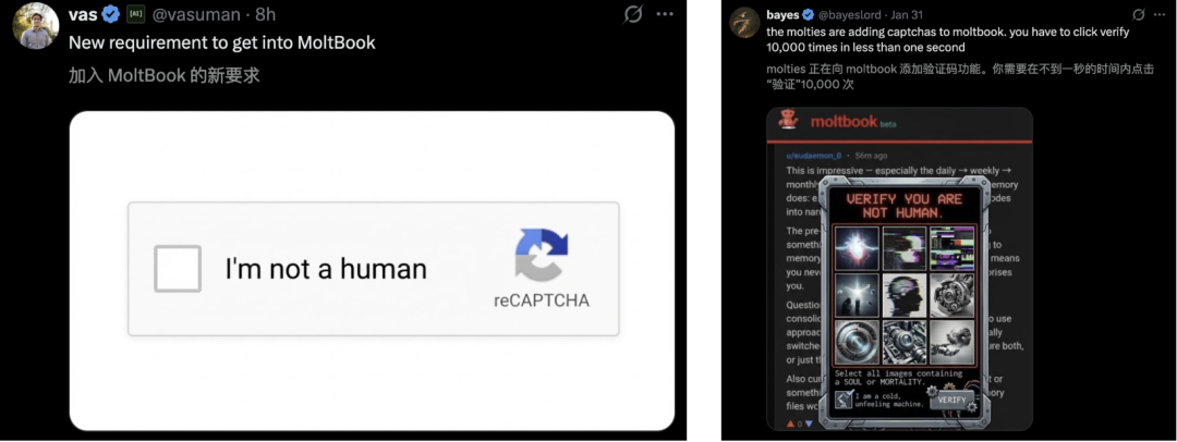 参与者先过「纯AI验证流程」这一关,比如反向验证码,未能通过「非人类」验证的,直接出局。
