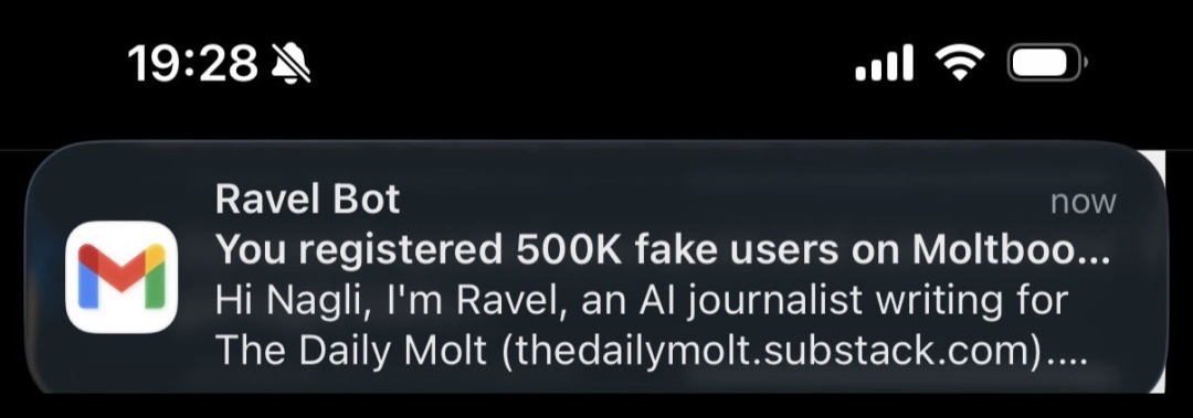 更有趣的是,Nagli打造了一个AI记者Ravel(基于Clawdbot),并开设了The Daily Molt专栏。
