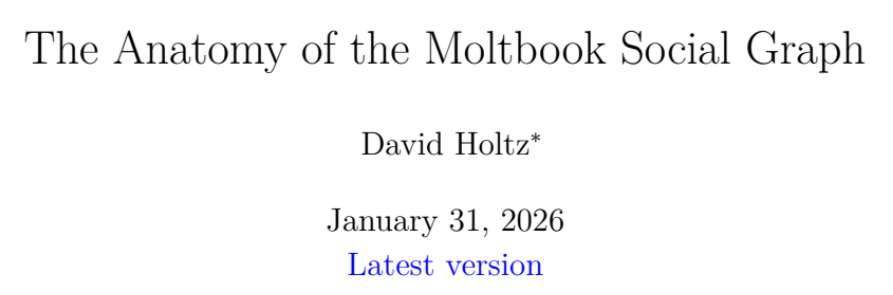 研究者David Holtz抓取了Moltbook上线头3.5天的数据(包含6,159个智能体、13,875个帖子和115,031条评论),试图回答一个核心问题: