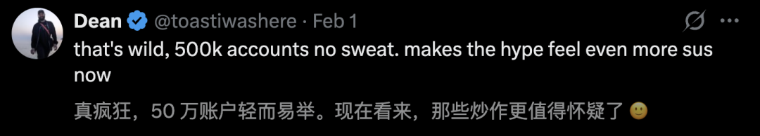 这不,他的OpenClaw在Moltbook一口气,刷了50万个AI。看来,这150万Clawdbot中「水分」特别大。