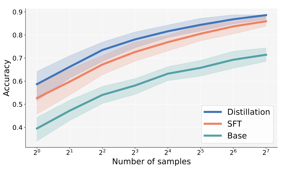 2.语言伪影:学生模型偶尔会模仿教师因看到示范而产生的特定语言模式(例如,在回答前加上“根据上述示例…”),尽管在训练初期对标记进行损失掩蔽能有效抑制这些伪影,但这仍是需要关注的现象。