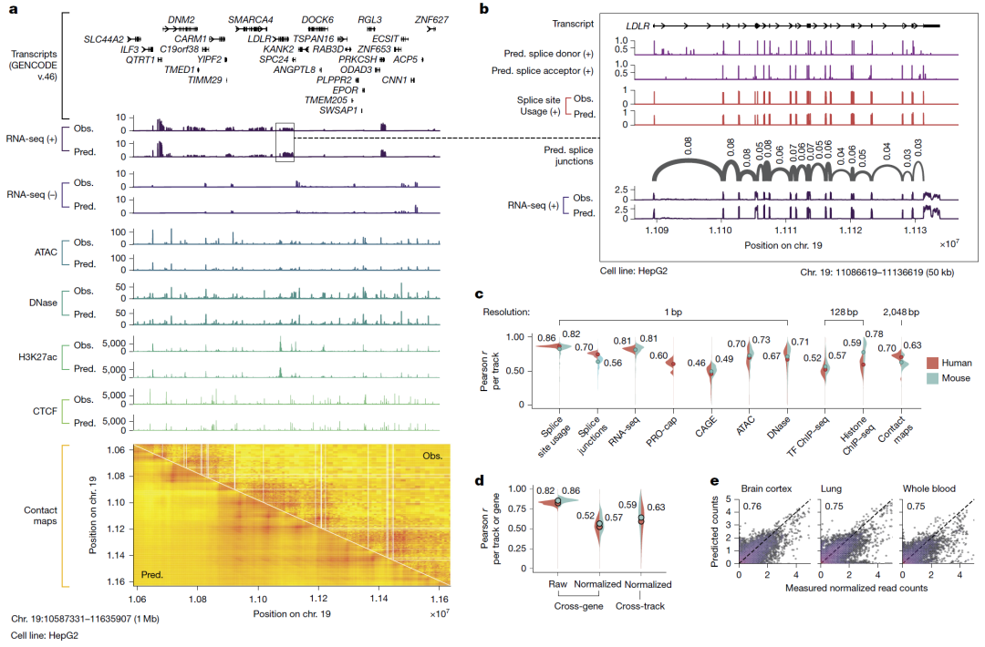 图2:基因组轨迹预测实例与定量性能。
