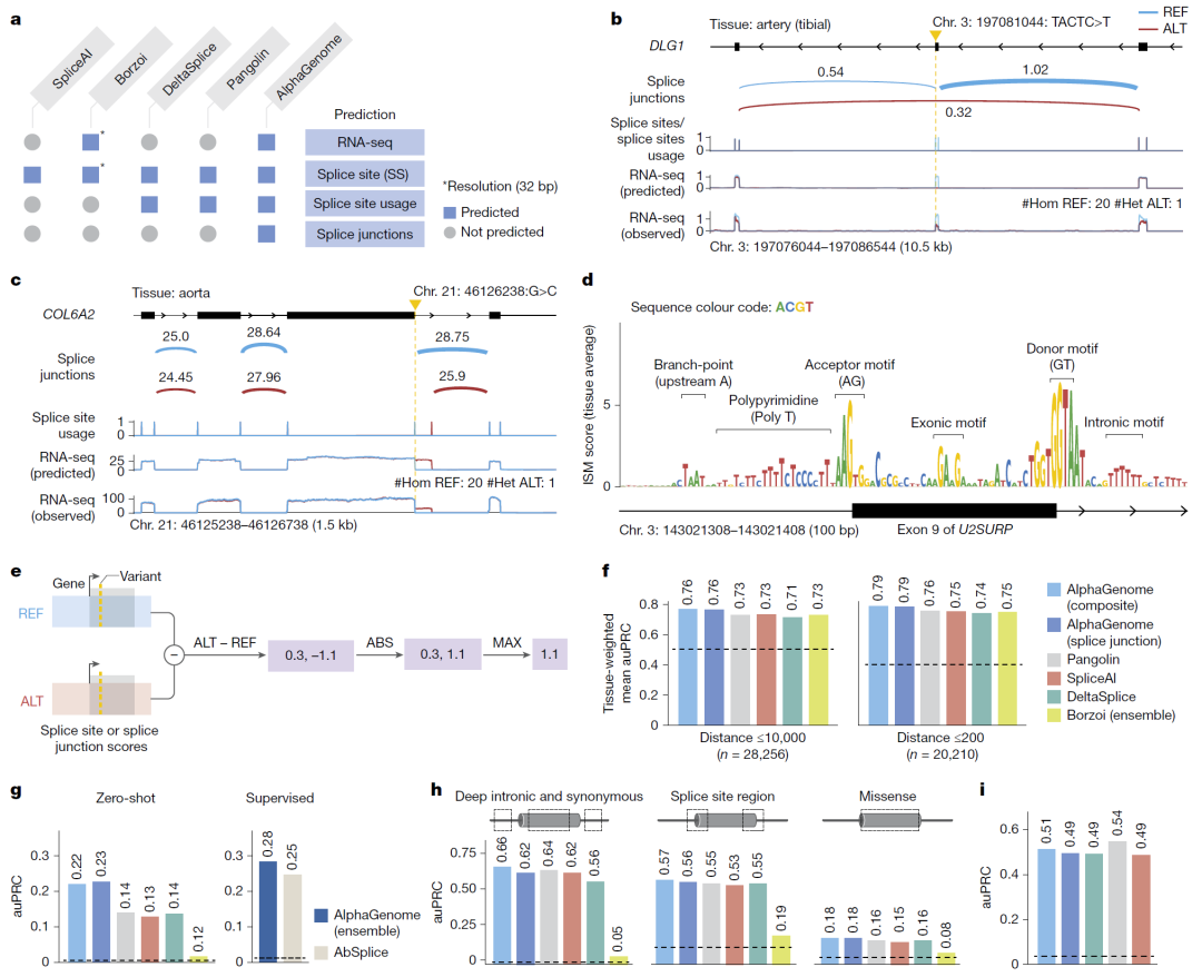 图3:剪接相关变异预测与对比分析。