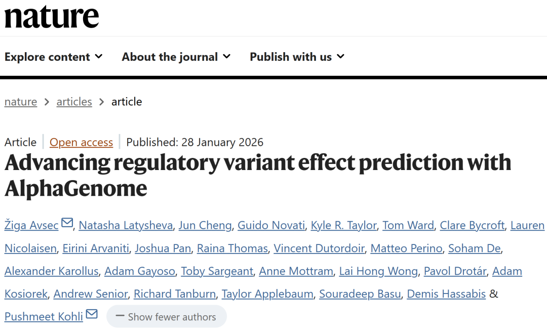 Avsec, Ž., Latysheva, N., Cheng, J. et al. Advancing regulatory variant effect prediction with AlphaGenome. Nature 649, 1206–1218 (2026).