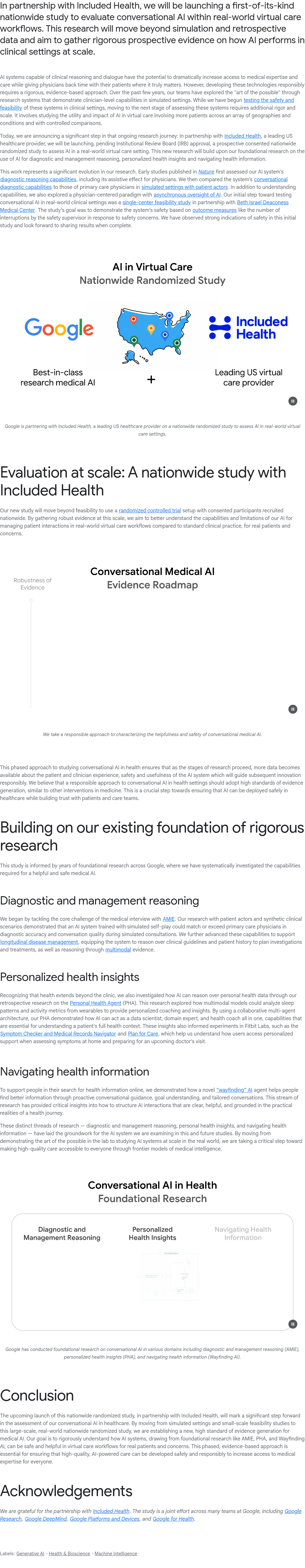 本研究与Included Health合作,启动美国首个全国性前瞻性研究,旨在真实虚拟医疗场景中评估对话式AI的临床表现,突破以往模拟和回顾性分析的局限。研究聚焦AI在实际诊疗流程中的安全性、有效性和规模化应用效果,致力于验证其提升医疗可及性、缓解医生负担的潜力。此前团队已在模拟环境中验证了AI的临床推理能力,但迈向临床落地需更严格、更大规模的实证支持。该研究强调负责任创新,以循证方法推动AI技术安全、可靠地融入真实医疗服务。(200字)