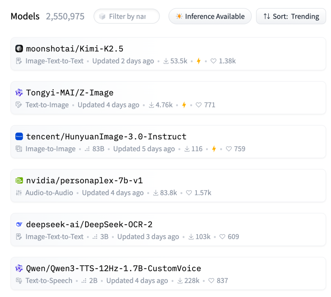 在Hugging Face上,Kimi K2.5登上了Trending榜首,下载量超过了5.3万。