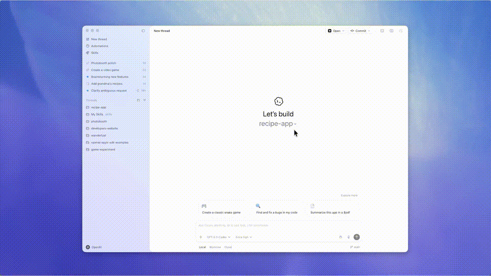 当你在应用中创建一个新Skill时,Codex可以在你工作的任何地方使用它:应用内、CLI或IDE扩展中。
