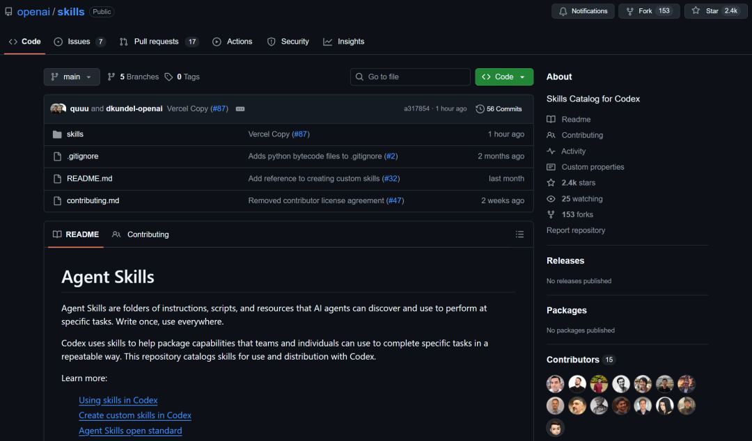 OpenAI分享的Agent Skills:https://github.com/openai/skills