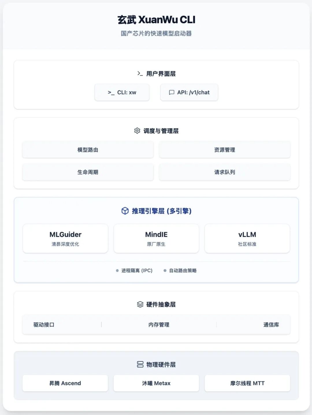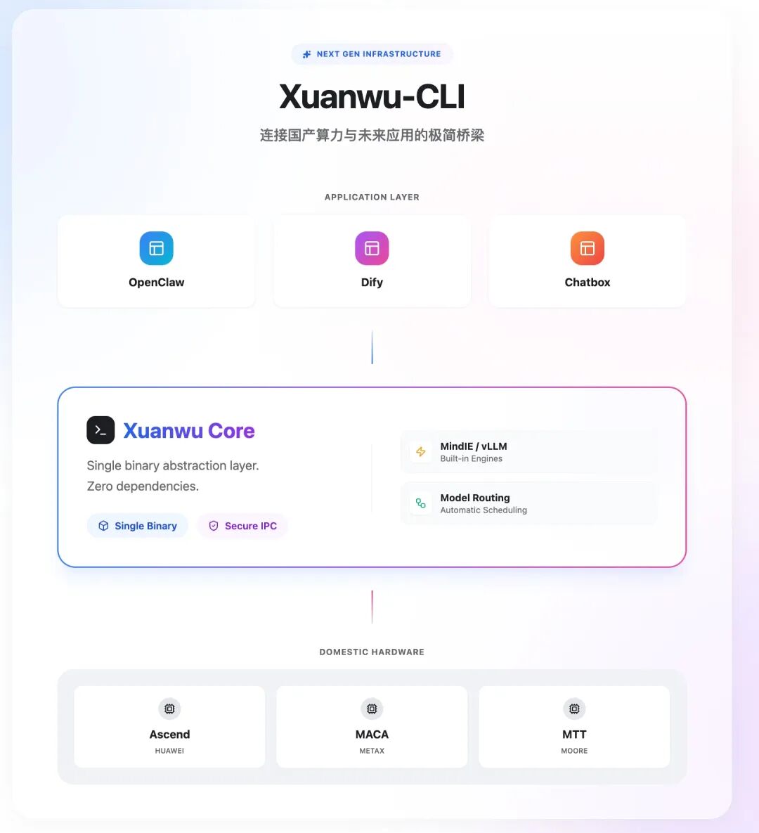 如果说前面讲的,是让本地跑模型简单易上手,那真正让玄武拉开差距的,是它对国产芯片的原生适配。