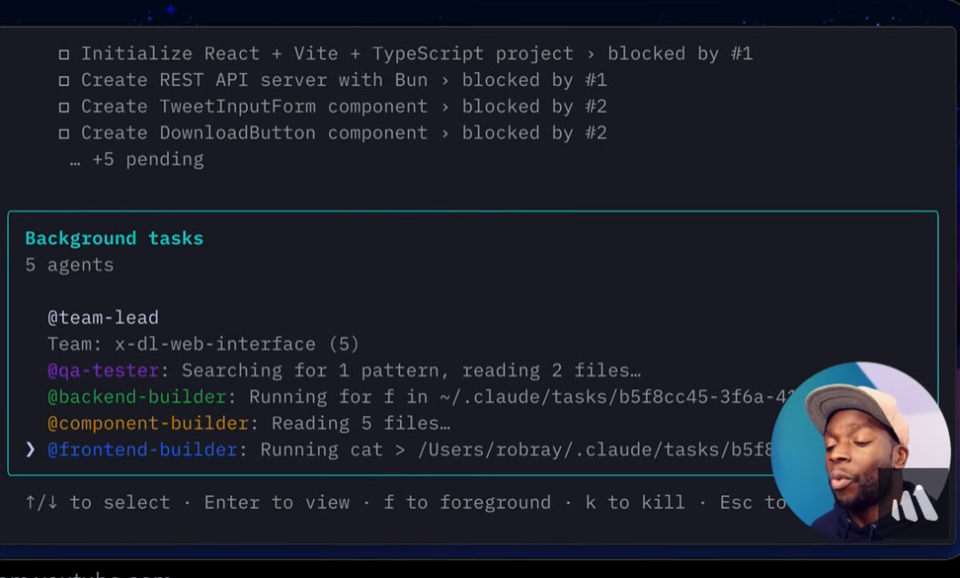 执行任务后,奇迹发生了!Claude自动创建了Team Leader、Front-end Builder、Backend Builder、Component Builder和QA Tester。