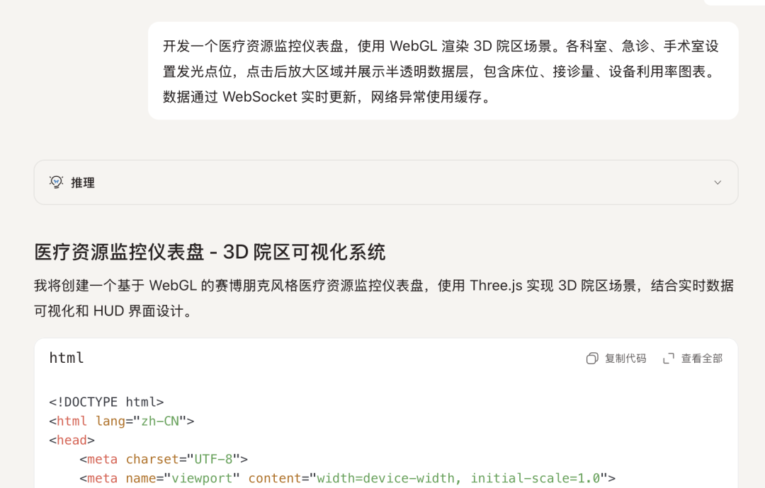 接下来看编程场景,让Step 3.5 Flash开发一个模拟医疗资源监控系统。