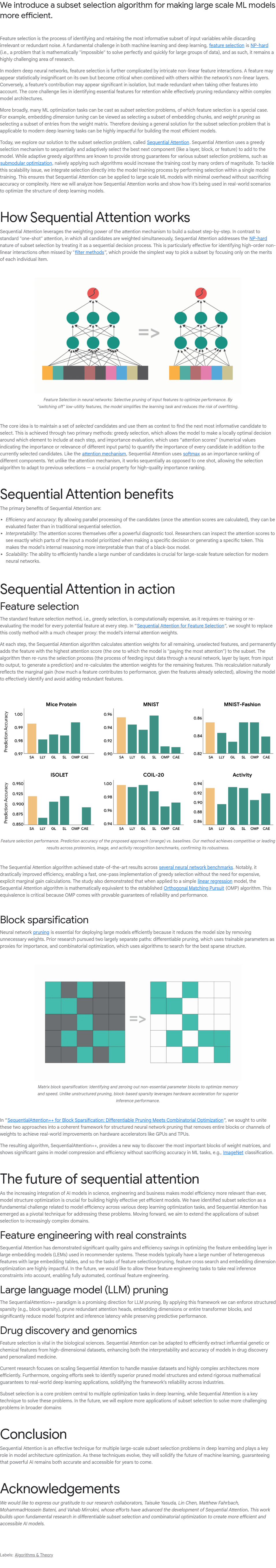 本文提出一种子集选择算法,旨在提升大规模机器学习模型的效率。特征选择是识别并保留最具信息量输入变量、剔除无关或冗余噪声的过程,但该问题在计算上属NP难,难以在大数据规模下精确高效求解。尤其在现代深度神经网络中,非线性特征交互使问题更复杂:单个特征可能孤立时看似不显著,却在与其他特征协同作用时至关重要;反之,其单独显著性也可能在联合建模中消失。因此,核心挑战在于准确判别并保留对模型性能真正必要的特征,同时兼顾计算可行性与效果鲁棒性。