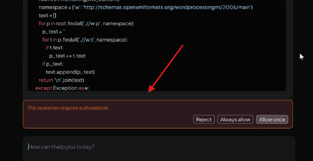 这一点我们在实测时也多次遇到,很多超越Agent权限的地方,它会单独提醒并请求用户确认授权范围。