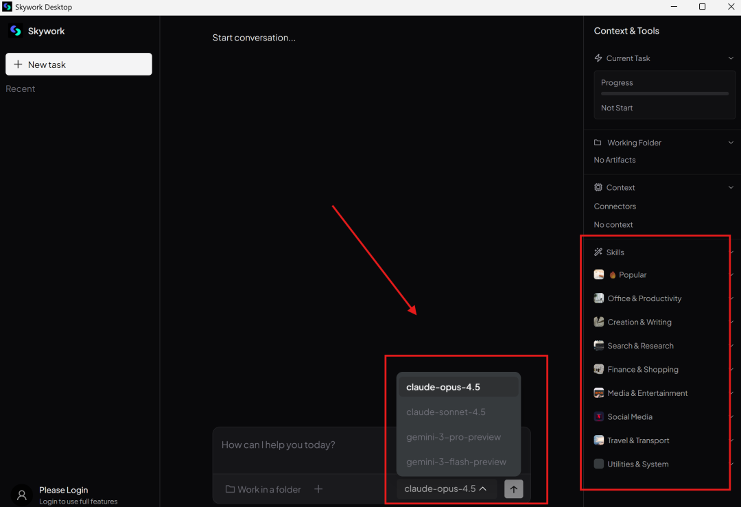 在天工Skywork桌面版这里,不仅有公认擅长编程的Claude 4.5模型,还有擅长全模态理解与生成的Gemini 3模型——