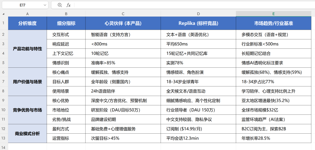 Prompt:基于文档内容,帮我做一份产品分析表格。
