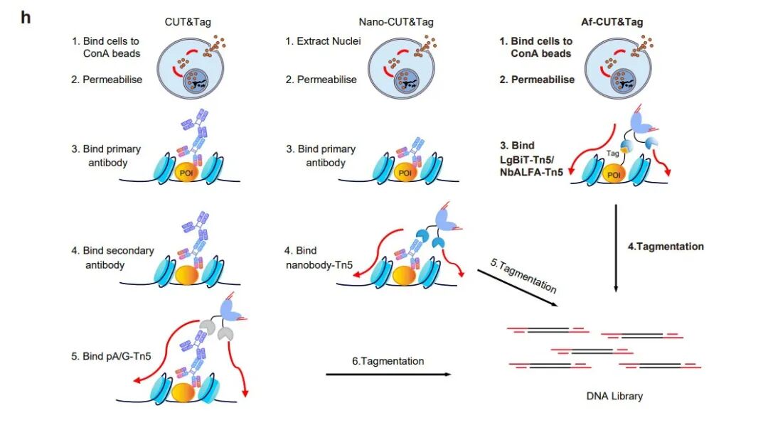 图1.Af-CUT&Tag与CUT&Tag、Nano-CUT&Tag的比较。