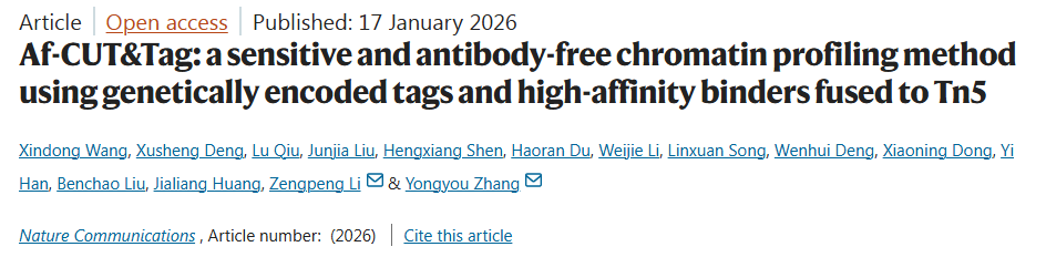 Wang, X., Deng, X., Qiu, L. et al. Af-CUT&Tag: a sensitive and antibody-free chromatin profiling method using genetically encoded tags and high-affinity binders fused to Tn5. Nat Commun (2026).