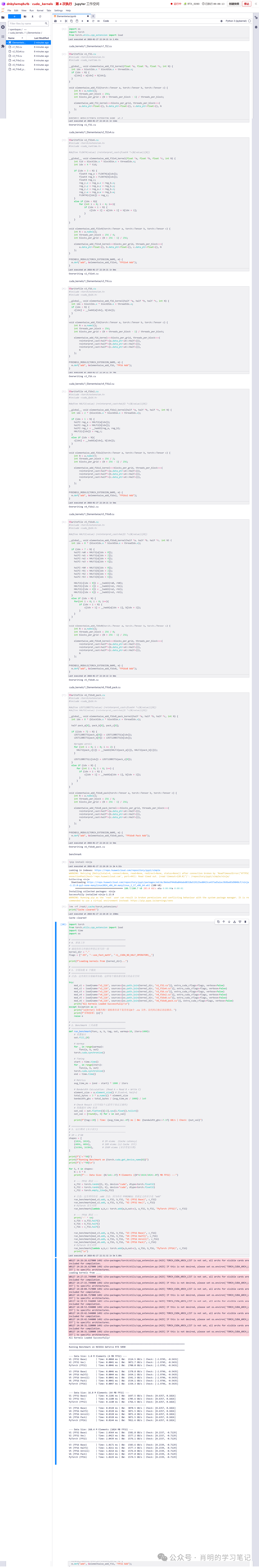 该脚本直接加载上述定义的 .cu 文件,并自动计算带宽(GB/s)与耗时(ms)。