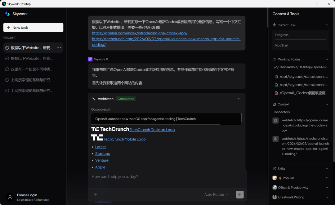 通过以上一系列实测,我们能清晰地勾勒出Skywork桌面版的产品哲学。