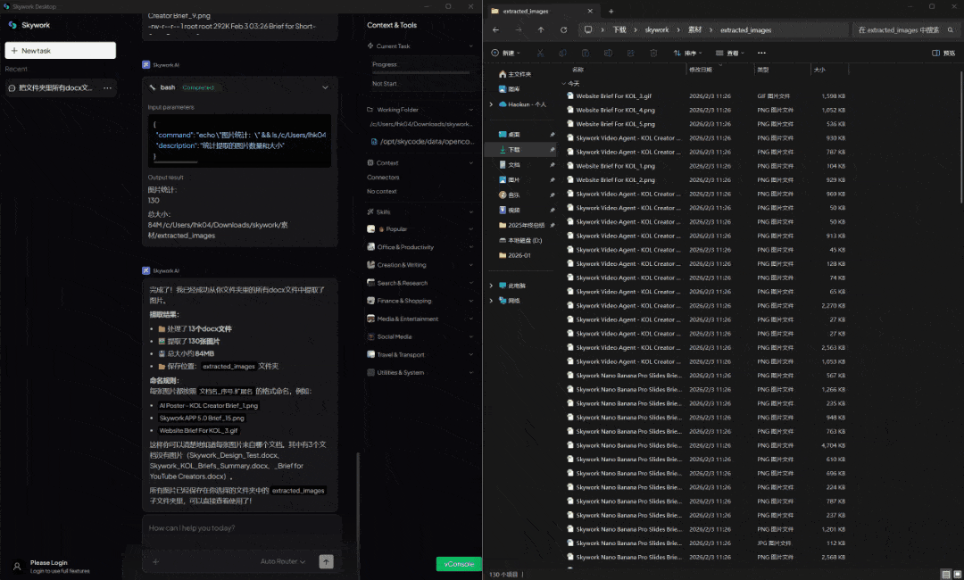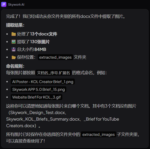 提取完成后,为了防止图片散乱,Skywork特地创建了一个全新的文件夹来进行存放。