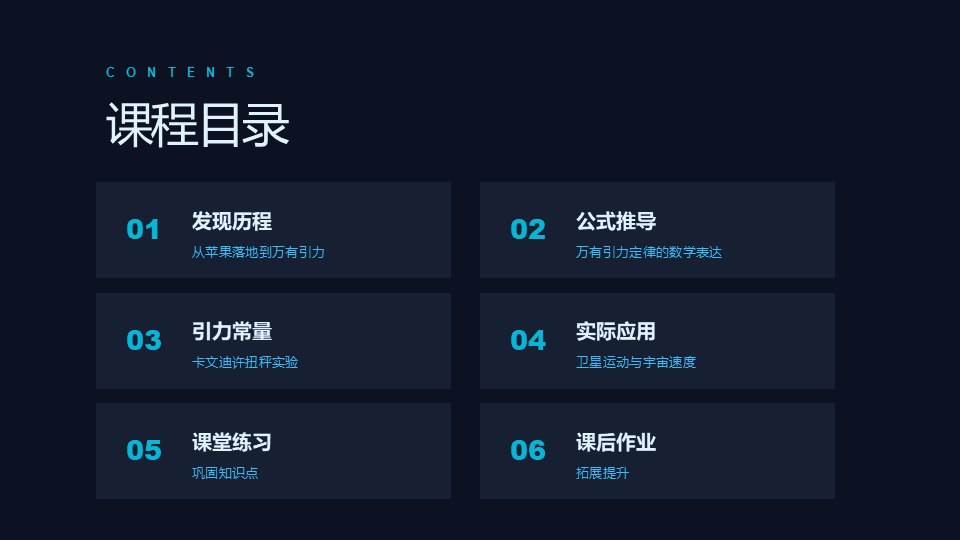 同样的素材,帮我制作一个介绍《万有引力定律》的课件PPT。