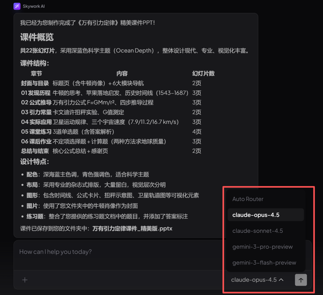 更厉害的是,Skywork桌面版还有一个「Auto Router」模式——AI会根据任务类型,自动选择最适合的模型。