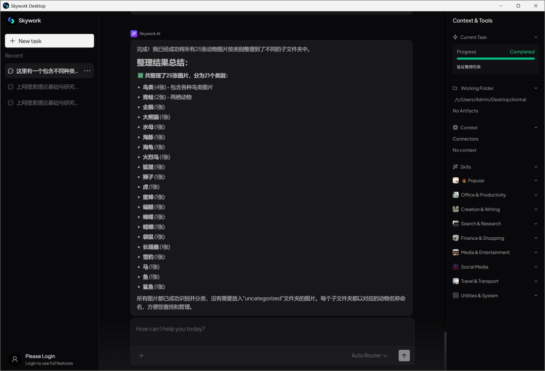 先来上一个简单的分类任务,看看Skywork如何把「地狱级」文件夹,打理得井井有条。