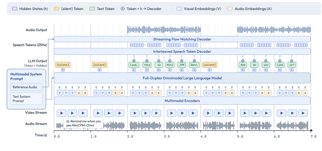 同时,通过时分复用机制,对在毫秒级时间线上对齐的多模态输入与输出进行统一建模,实现高效的流式处理。