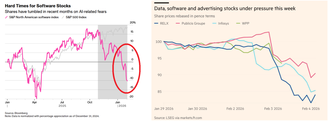 短短5个交易日内,标普500软件服务指数暴跌近 13%,市值缩水之快,甚至让刚刚创下历史新高的标普500大盘都黯然失色。