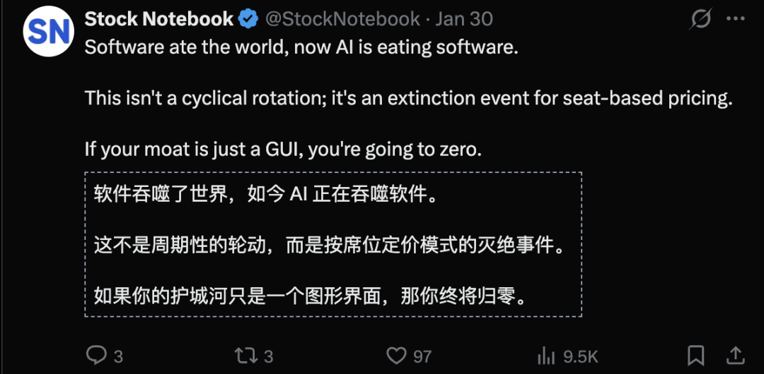 因此,全球软件行业正经历一场极其惨烈的「信仰地震」!