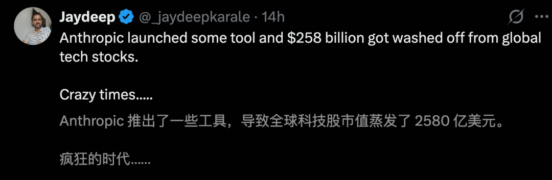 Anthropic这只AI蝴蝶扇了一下翅膀,全球股市狂风暴雨、令人胆寒──