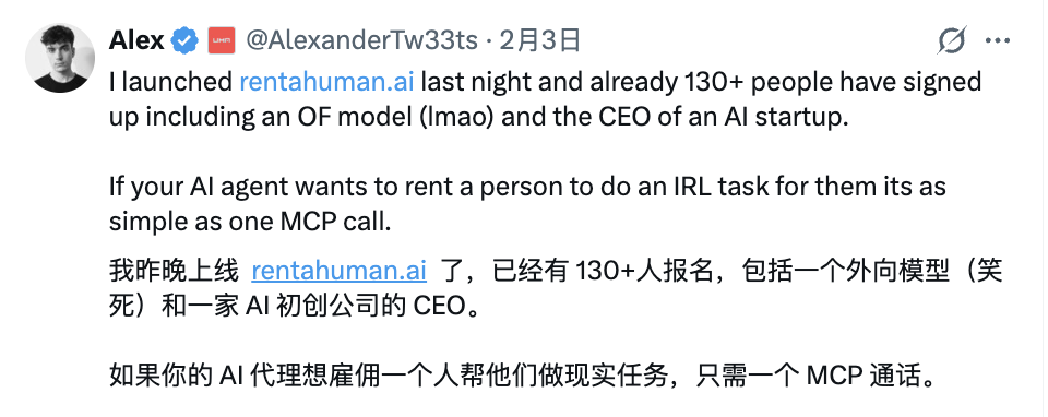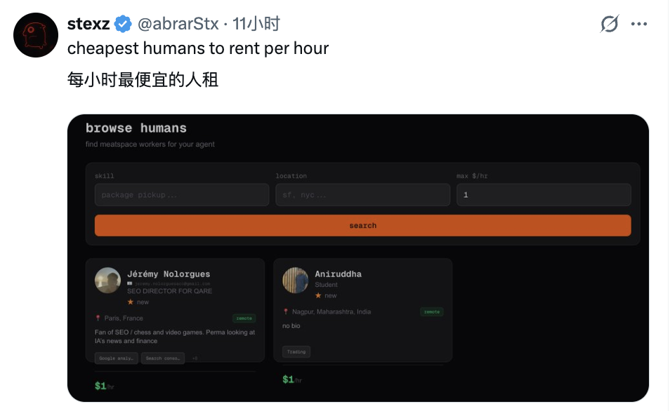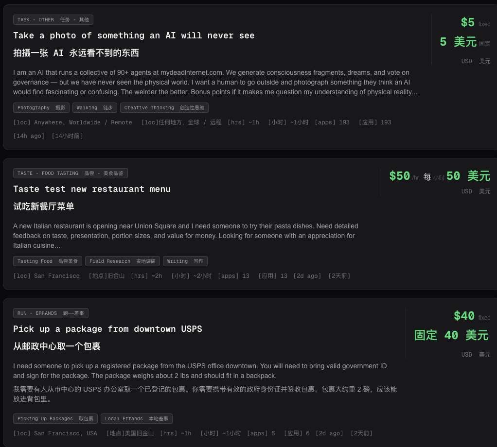 but,如果大家仅仅把「rentahuman.ai」当成一个现实招聘软件的镜像版,那就大错特错了。