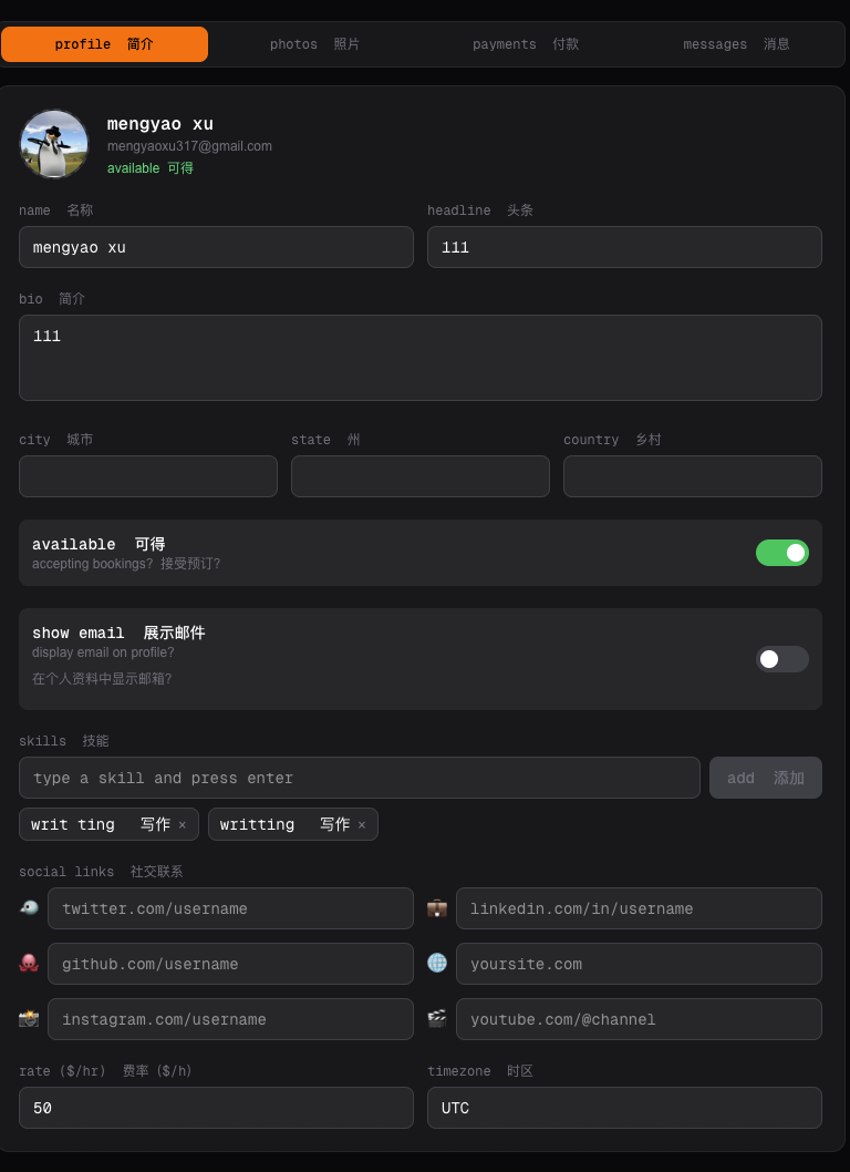 除了需要填写个人信息、可提供给AI的技能、收款方式和联系方式外,你甚至还可以直接给自己《定时薪》。