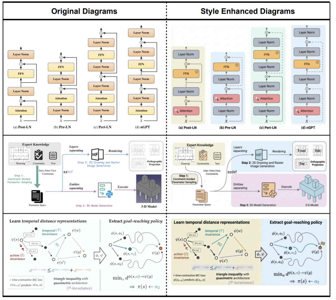 如果你写的是Agent论文,Stylist会主动调用可爱风格的2D机器人图标或对话气泡,强调「交互感」;
