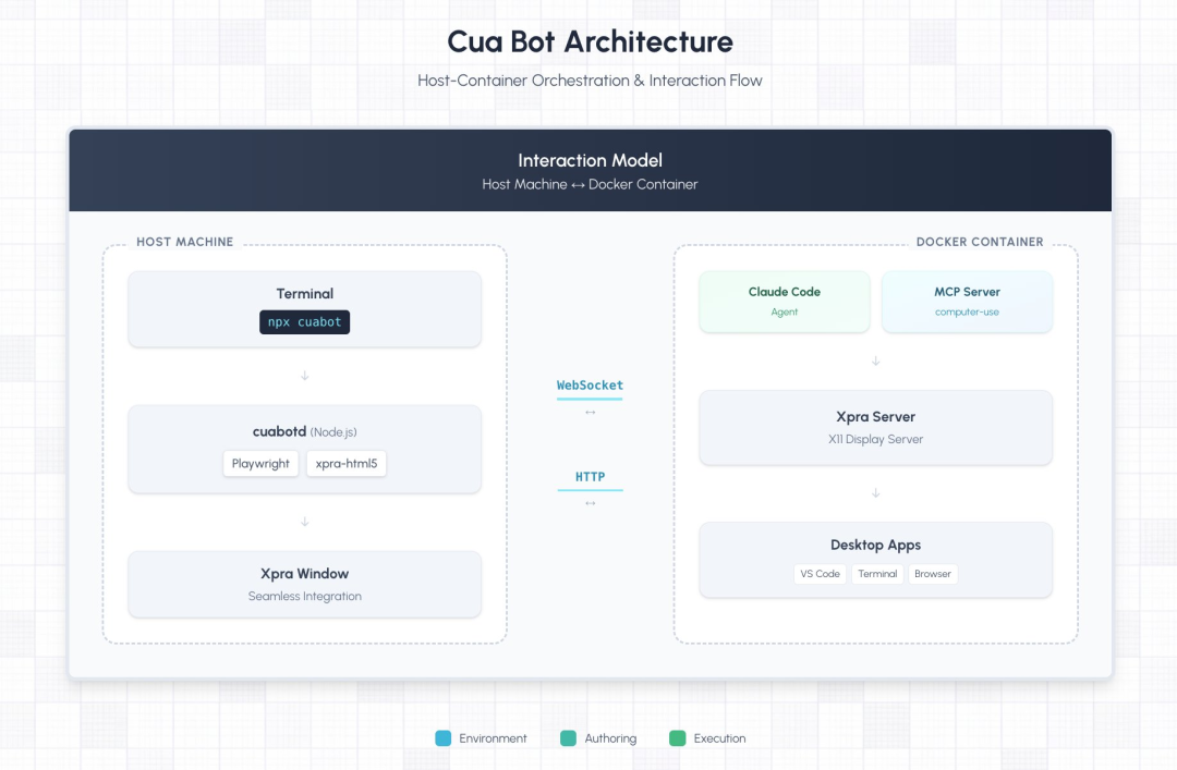 CuaBot是这样实现的:它会启动一个Docker container,在里面跑完整的X11 Linux桌面。