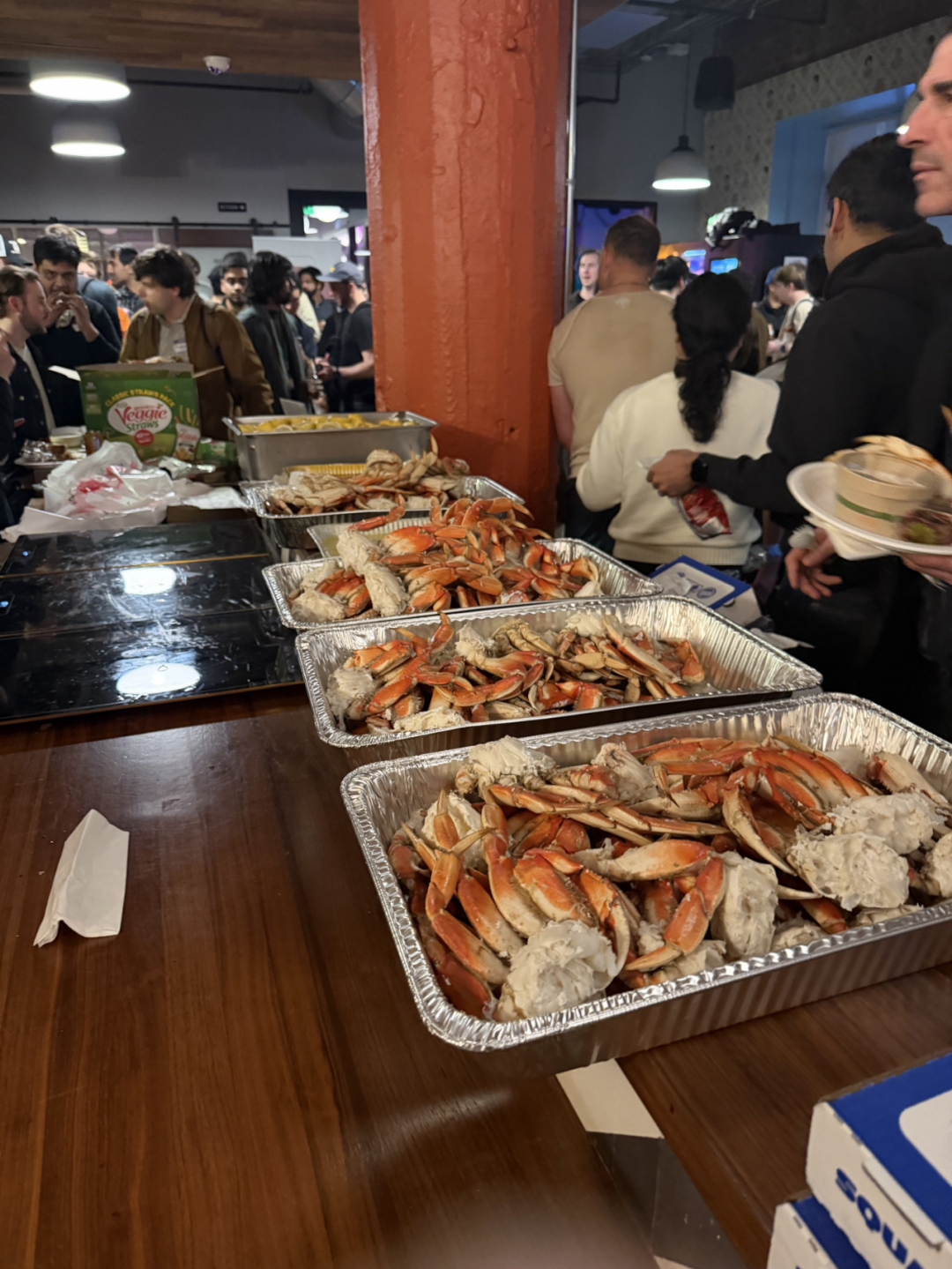 「螃蟹、披萨、人形机器人、500多人、一台AI自动售货机,还有排了两个街区的长队。」