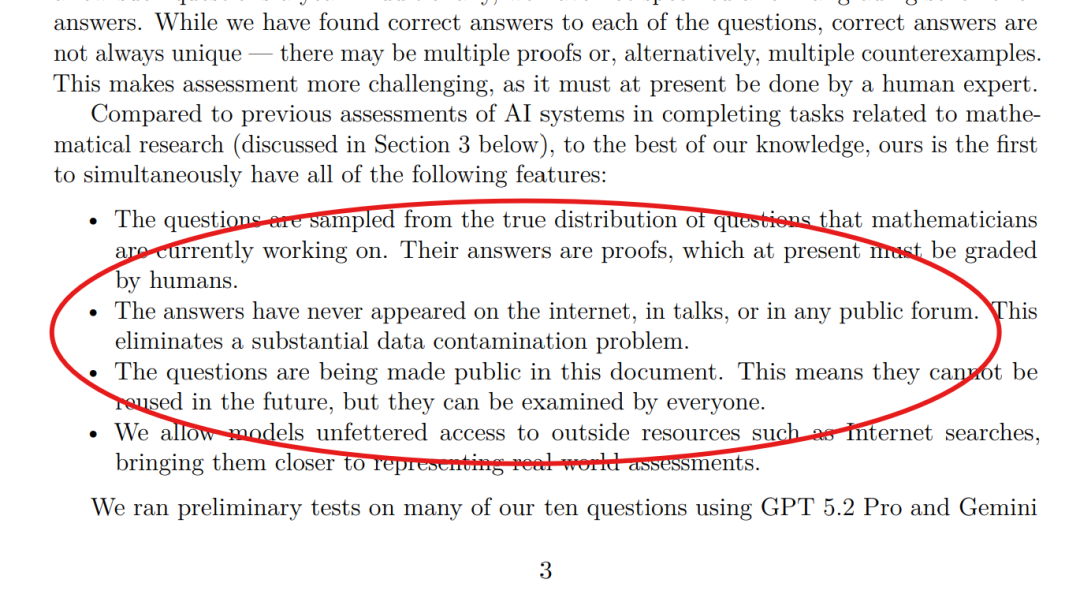 检验当前AI系统,是否具备独立解决研究级数学问题的能力。