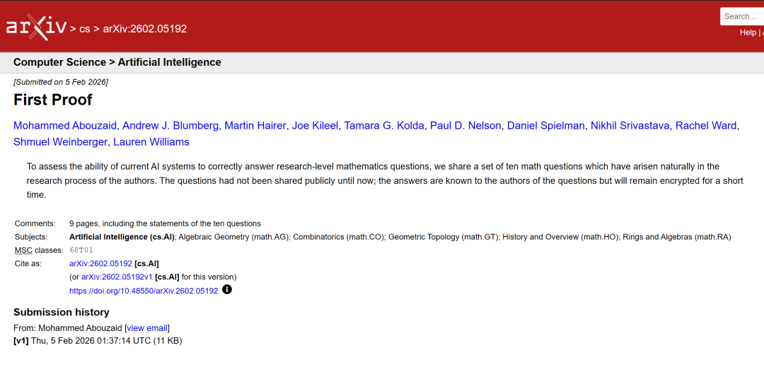 他们明确表示,First Proof仅聚焦数学研究最后、也是最明确的阶段——