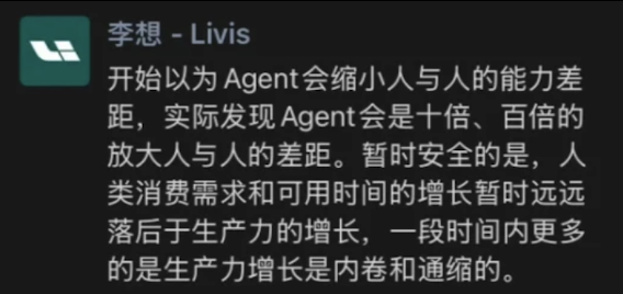 说到Agent、GUI Agent,就在几天前,理想汽车CEO李想的一条朋友圈也在科技圈引起关注。