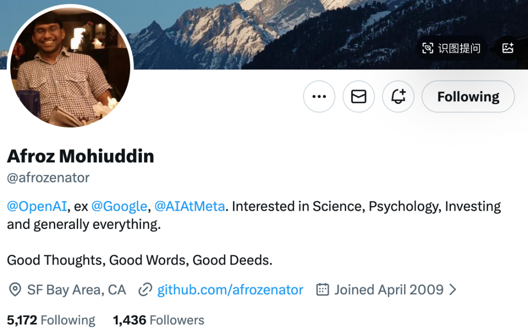 还有Afroz Mohiuddin,他曾在谷歌工作 14 年,担任软件工程师,24年加入 Meta,随后又跳槽并加入了OpenAI 技术团队。