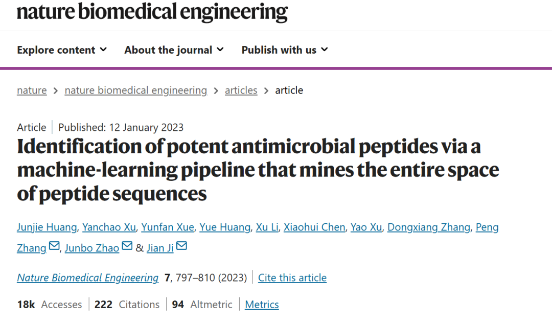 Huang, J., Xu, Y., Xue, Y. et al. Identification of potent antimicrobial peptides via a machine-learning pipeline that mines the entire space of peptide sequences. Nat. Biomed. Eng 7, 797–810 (2023). https://doi.org/10.1038/s41551-022-00991-2