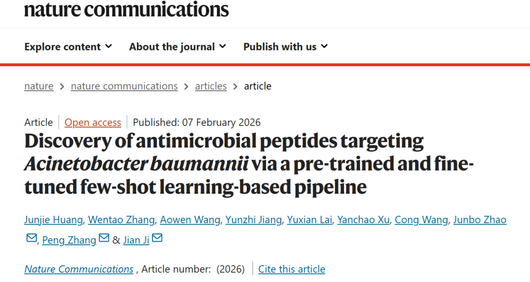 Huang, J., Zhang, W., Wang, A. et al. Discovery of antimicrobial peptides targeting Acinetobacter baumannii via a pre-trained and fine-tuned few-shot learning-based pipeline. Nat Commun (2026).