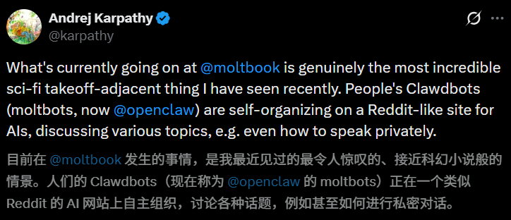 一个名为Moltbook的「AI智能体版Reddit」刚刚上线,就有170万个智能体涌入,留下了数百万条帖子。