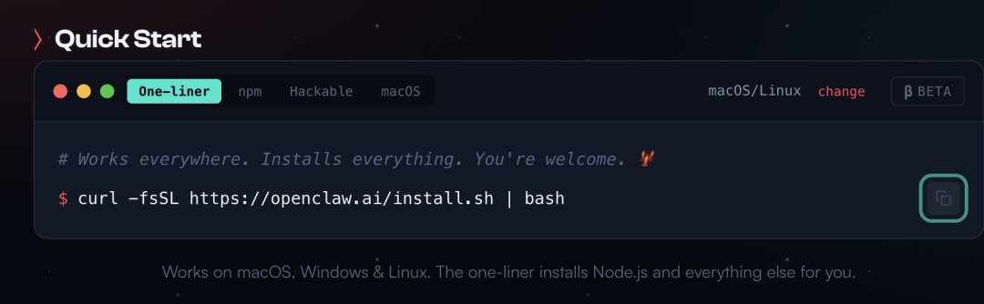 大家都在传OpenClaw上手简单,官方文档里也确实明晃晃地写着“只需一行命令”。看起来是不是特潇洒?好像复制粘贴一下就能拥有一个超级AI员工。