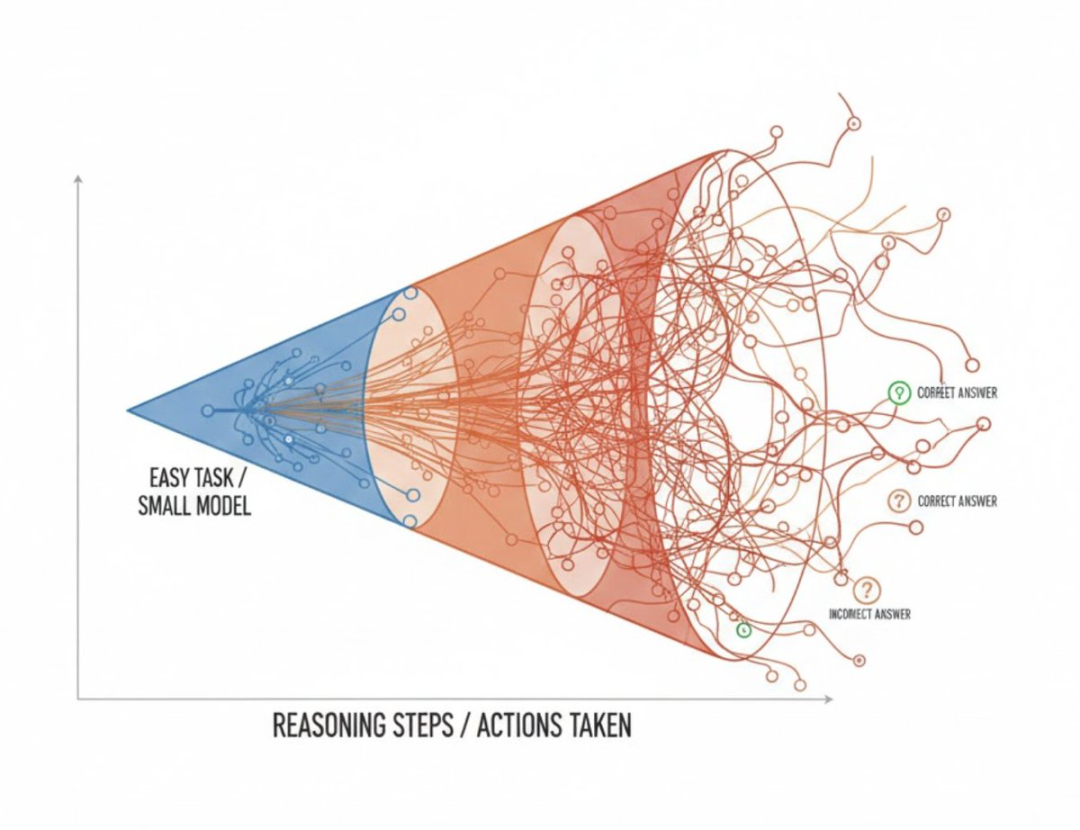 模型越大,算力越多,不一定越聪明。更可能的是:浪费更大、思维链更乱、幻觉更猛。
