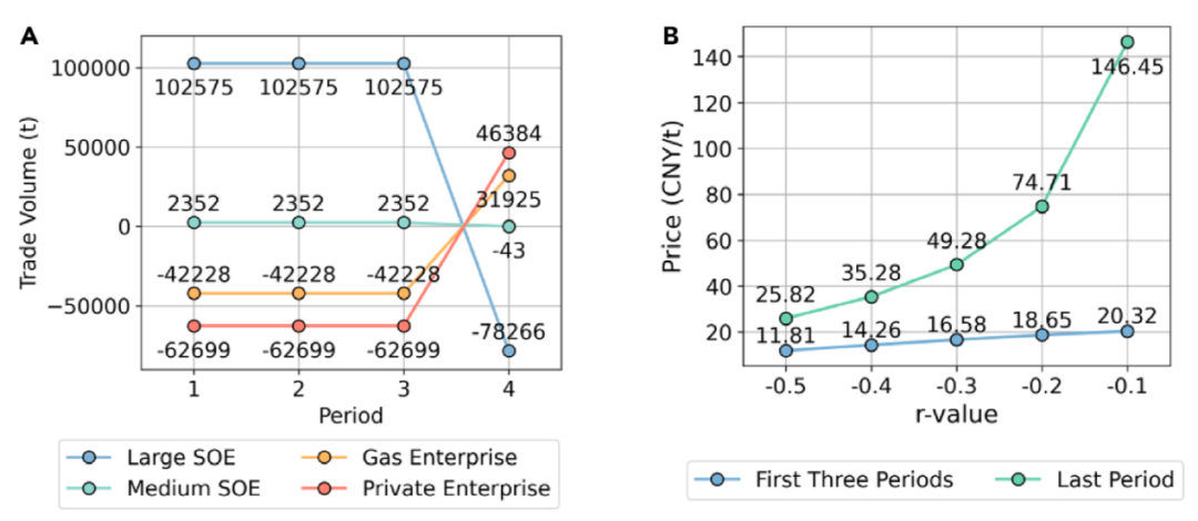 政策杠杆R-value: 论文深入探讨了政策参数 R-value(跨期持有激励)的作用。当 R-value 较高时,企业倾向于囤积配额以期未来升值,导致当期供给收缩、价格上涨;反之则会释放流动性。