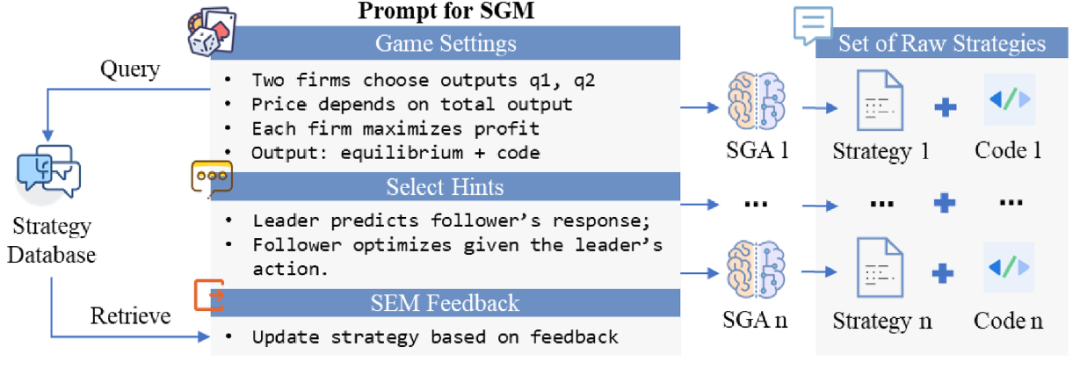 为了克服单一视角的局限,SGM采用了多智能体并行的策略。如图2所示,多个策略生成智能体同时工作,以探索广阔的策略空间。
